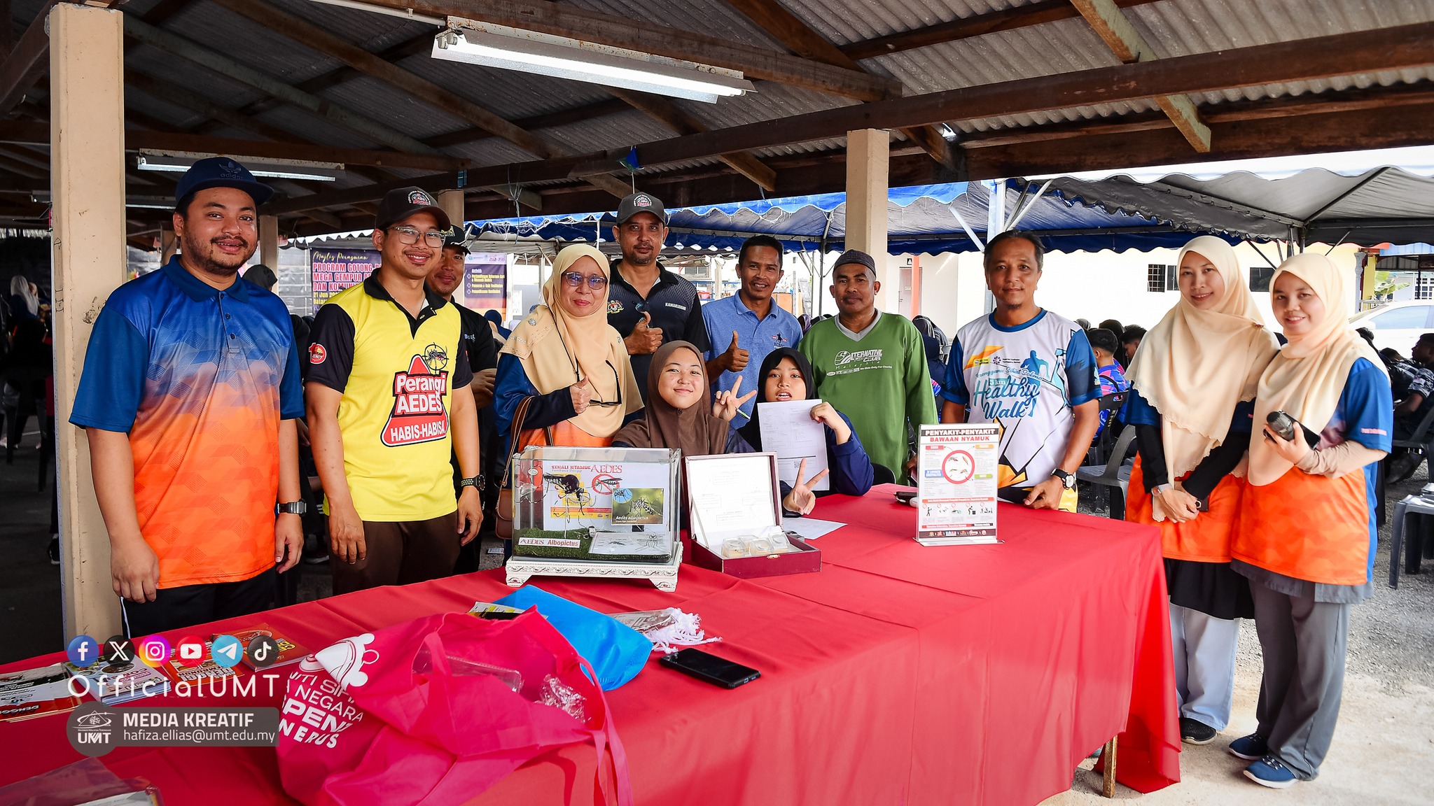 komuniti setempat. Program melibatkan hampir 300 peserta yang terdiri daripada pelajar UMT dan komuniti setempat Kampung Kubang Badak. Perasmian program telah disempurnakan oleh Dr. Arnie A. Rahim, Pengarah Pusat Kesihatan Universiti (PKU). Turut hadir, Dr. Ridhwan Abd Rani, Pegawai Kesihatan Vektor, Pejabat Kesihatan Daerah Kuala Nerus(PKDKN) bersama Timbalan Pengarah Kolej Kediaman UMT.